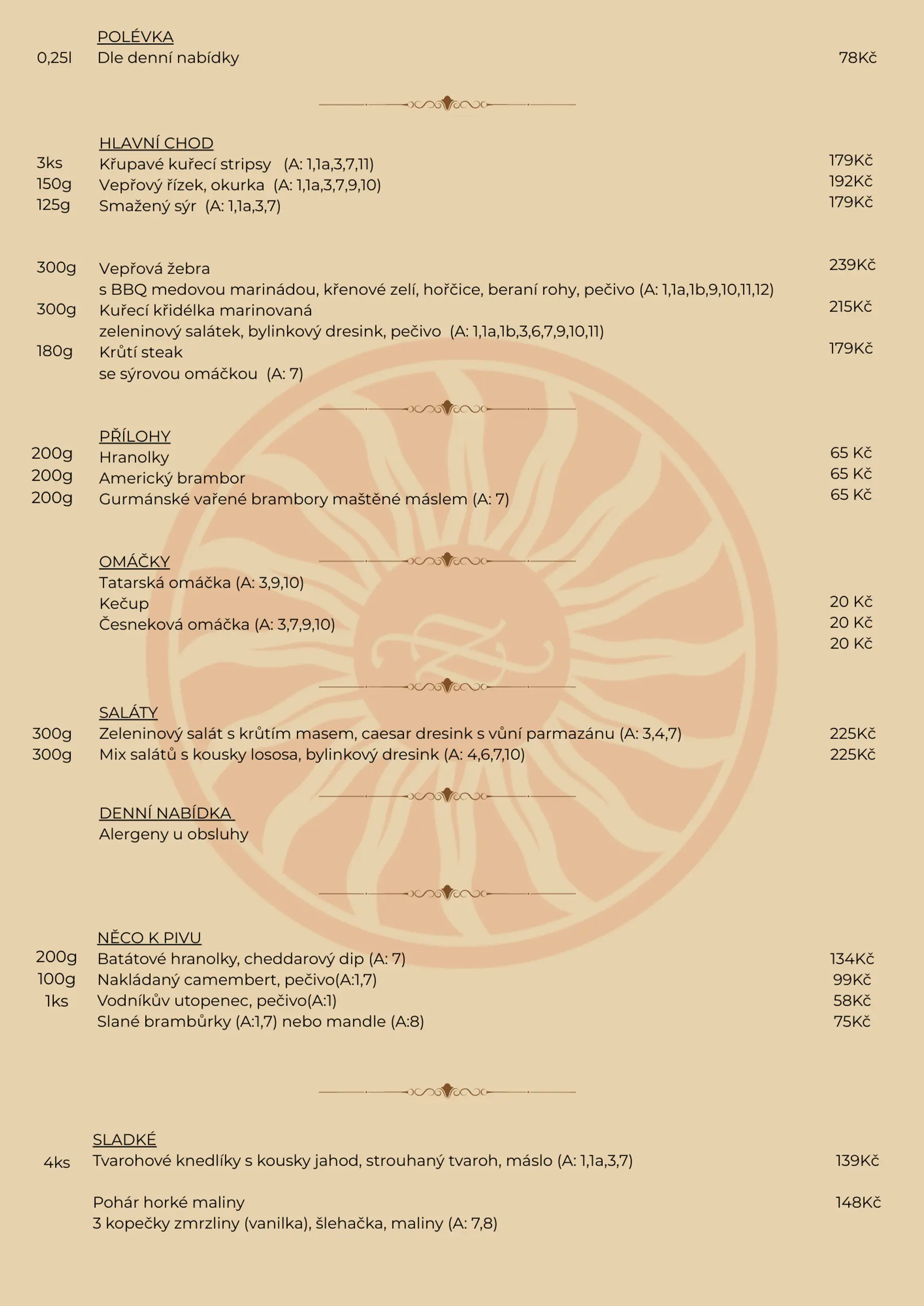 Křenová omáčka s hovězím masem, houskový knedlík 189,-